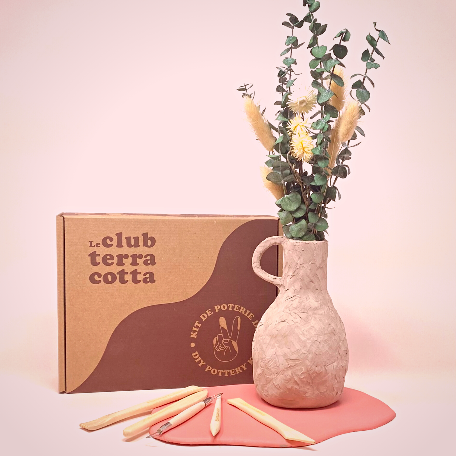 Ne cherche plus le petit bouquet de fleurs séchées parfait pour complémenter le vase réalisé de tes propres mains, on l'a pour toi juste ici! Les branches d'eucalyptus et les fleurs blanches vont rehausser vos créations, promis!