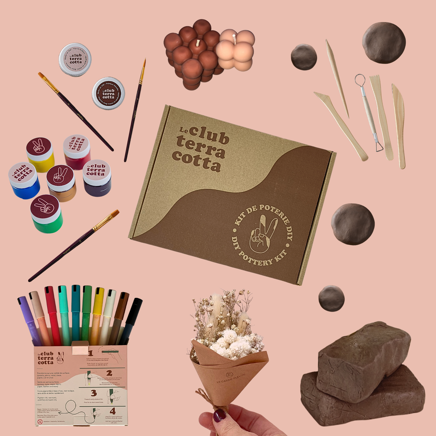 Really anything you want. The only limit is your imagination, but for some inspiration you can visit our Inspiration page or our < a href="https://www.instagram.com/clubterracotta/" target="_blank" title="Instagram Club terracotta | DIY pottery kits">Instagram. Popular pieces are pots for succulents and cacti, trinket/trinket plates, candle holders, wall hangings and dried flower vases. As the clay is not fired, it will remain sensitive to water but the acrylic and varnish provided in the box will make it much more resistant. If you choose to make a cachepot for your plant, we advise you to leave your plant in its original pot and take it out for watering.