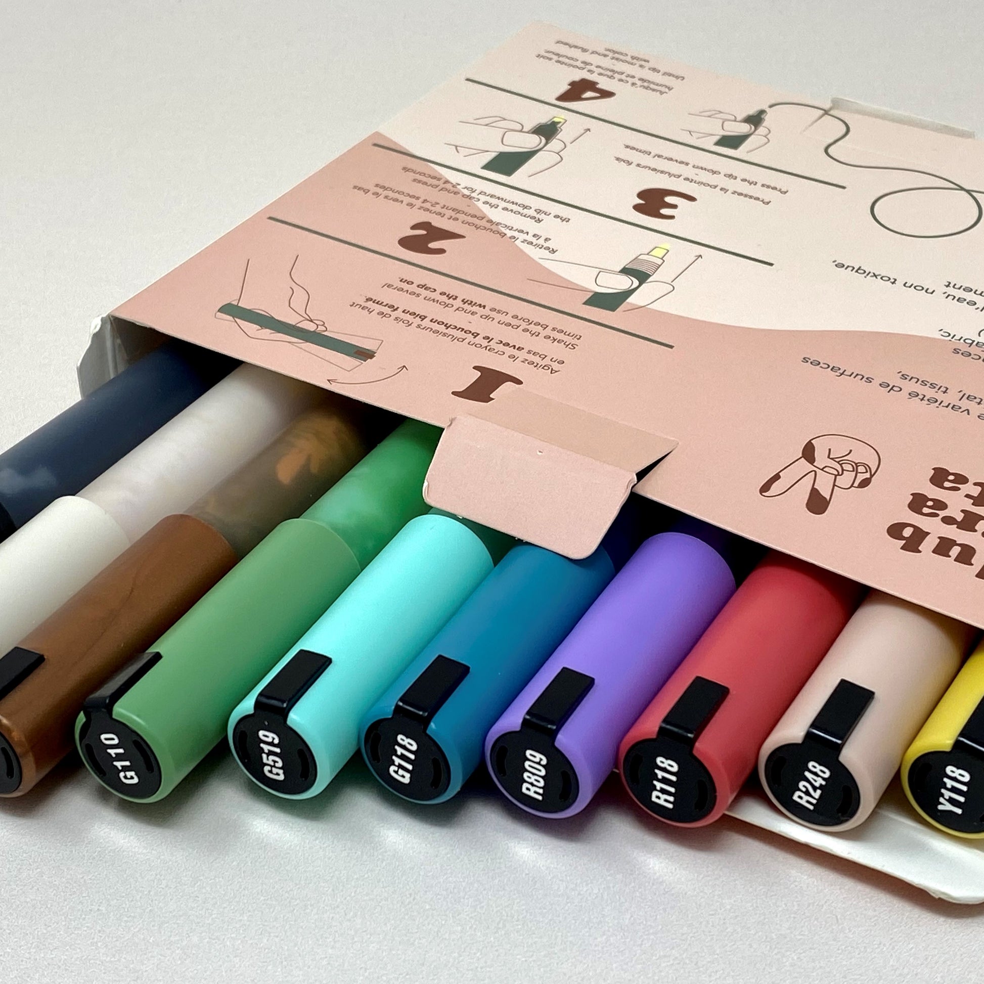 We use quality, non-toxic, high viscosity water-based acrylic paints. We chose a paint that is made here in Quebec.